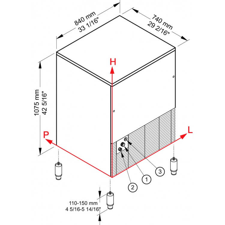 Größe 740 × 840 × 1075 cm